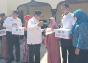 Bupati Kapuas H M Wiyatno SP menyerahkan bantuan awal kepada para korban.