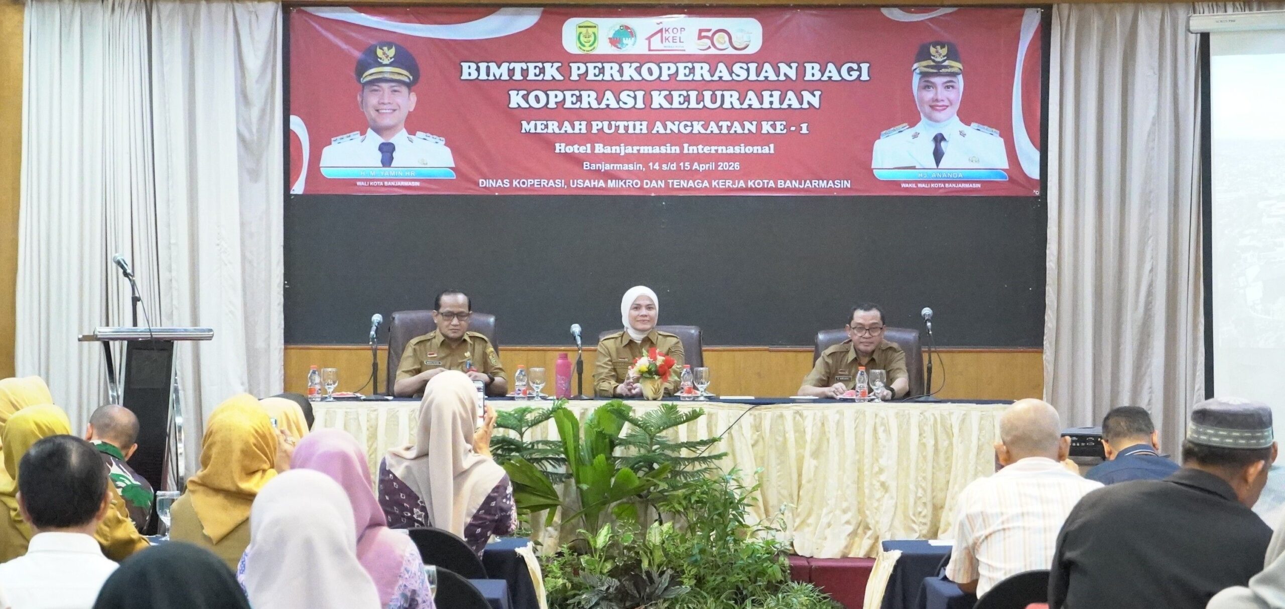 BANJARMASIN, pojokindonesia.com – Pemerintah Kota Banjarmasin melalui Dinas Koperasi, Usaha Mikro, dan Tenaga Kerja menggelar bimbingan teknis (Bimtek) bagi pengurus Koperasi Kelurahan Merah Putih se-Kota Banjarmasin, Selasa (14/4/2026).