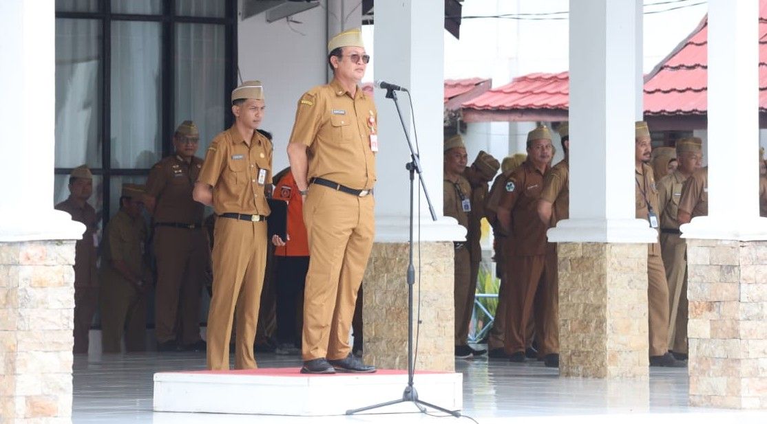 Marabahan, pojokindonesia.com – Kepala Dinas Pekerjaan Umum dan Penataan Ruang (PUPR) Kabupaten Barito Kuala, Akhdiyat Sabari, memimpin upacara di halaman Kantor Sekretariat Daerah, Senin (13/4/2026).